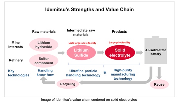 이데미쓰는 이 시설에서 생산된 황화리튬을 기본 소재로 한 고체 전해질 양산을 가속화하고 다양한 고객에게 고성능 고체 전해질을 광범위하게 공급할 예정이다. 발표 자료에 따르면 이는 축전지 공급망을 강화하고 일본의 축전지 산업 경쟁력을 개선하려는 정부 정책에 기여하게 된다.