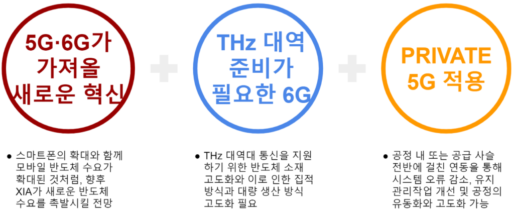 첫째, 5G는 이미 이동통신망 구축이 진행 중이기 때문에, 5G·6G로 인해 활성화될 산업 XR, IoT, AI 즉 XIA와 관련된 반도체 산업에 대한 사업화 및 고도화에 집중해야 할 것입니다.