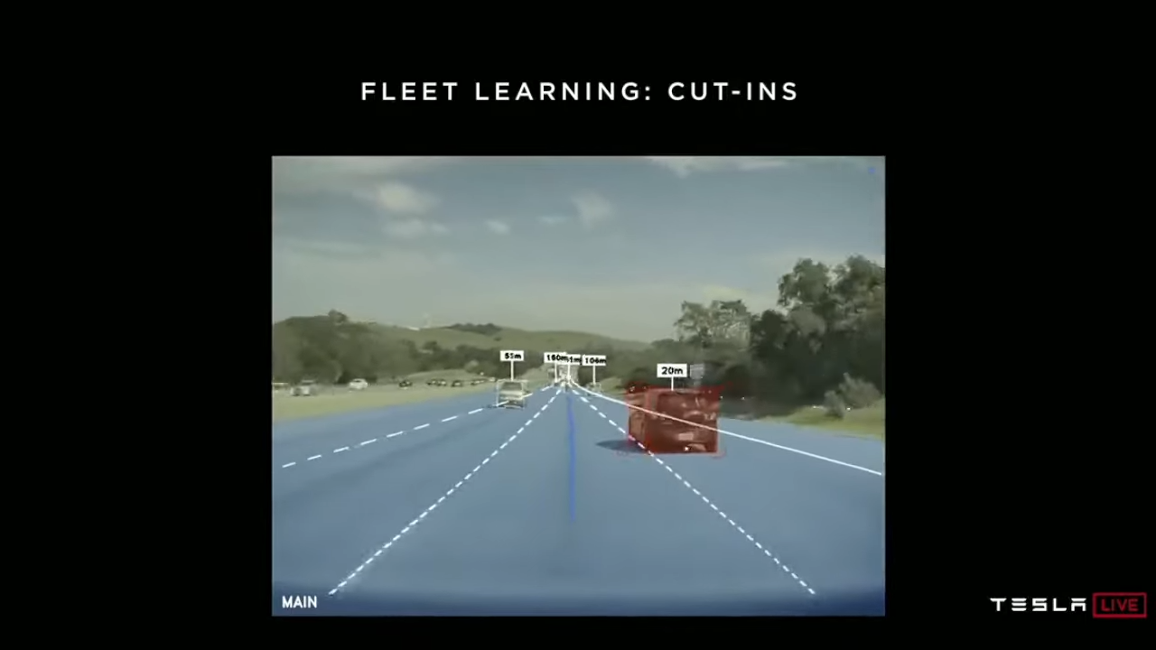테슬라는 끼어들기에 대한 데이터를 모으기도합니다(2019년의 영상이니까 이미 적용되었을지도..) 테슬라의 오토파일럿은 차량이 끼어들기하려고 한다면 최대한 빨리 감지할 수 있어야 합니다.