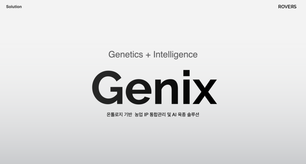 설립 3년 미만의 농업 스타트업으로써 인상적인 성과를 내는 배경에는 로버스의 자체 AI솔루션인 Genix가 있다. Genix는 약 42만 개 이상의 글로벌 품종 데이터를 활용하고 각 국가의 재배환경·기후·유통시장 데이터와의 상관관계를 정의하고 분석해, 타겟 국가에서의 재배 가능성 및 유통성 예측을 자동화하고 있다.