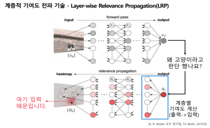 딥러닝 모델에 입력 후 출력이 나왔을 때, 입력 중에서도 어떤 요소가 출력에 중요한 기여를 했는지 찾는 '인풋 리트리뷰션(Input retribution)' 기술은 상용화에 쓰일 만큼 발전했다.