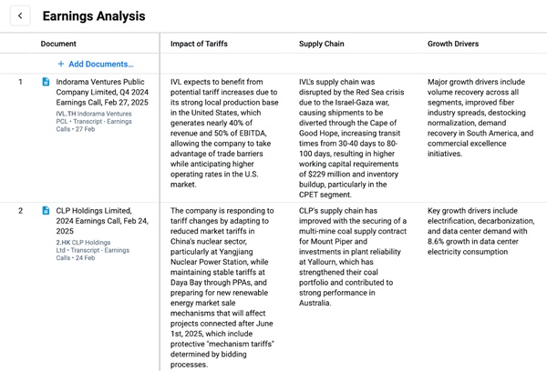 2▲경쟁사 동향 벤치마킹=업계 다른 기업들이 어떻게 대응하고 있는지 모니터링하는 능력 또한 중요하다. 기업은 실적 발표 회의록, 투자자 브리핑, 경영진의 논평을 통해 경쟁사의 동향을 파악할 수 있다. 공급망 이전, 계약 구조 조정, 가격 조정 등 다양한 조치가 취해지고 있다. 생성적 AI는 이러한 프로세스를 효율적으로 만들어 패턴과 전략을 즉시 표면화한다. 이를 통해 기업은 자체 대응 방식을 벤치마킹하고, 사각지대를 피하며, 급변하는 환경에서 민첩성을 유지할 수 있다. 동종 물류 제공업체든 동종 제조업체 그룹이든 간에 톤(tone), 전략 및 긴급성의 차이점을 강조해 더욱 스마트한 벤치마킹과 신속한 대응을 할 수 있도록 지원해야 한다. 알파센스사의 경우 자사의 생성형 그리드(Generative Grid) AI 도구가 수십 개의 기업 공시 정보를 체계적이고 비교 가능한 요약으로 정리해 팀이 핵심 업체의 대응 방식을 훨씬 짧은 시간 안에 신속하게 파악할 수 있도록 지원한다고 밝히고 있다.