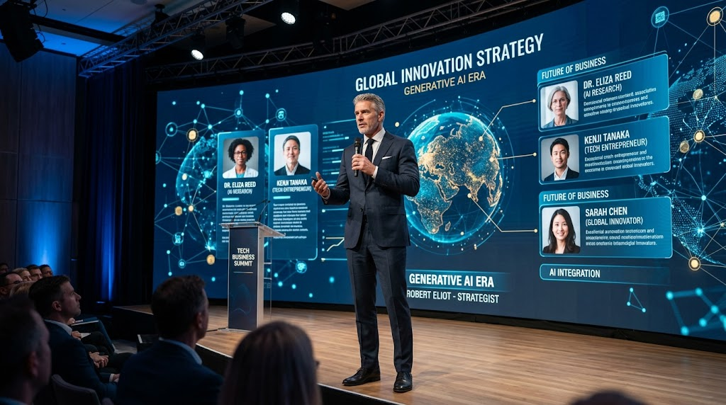 앤디 색은 'AI 최전선' 공동 저자인 애덤 브로트먼과 포럼3를 공동 설립해 글로벌 브랜드들이 새로운 기술을 효과적으로 활용할 수 있도록 지원하고 있다. (이미지=AI로 생성)