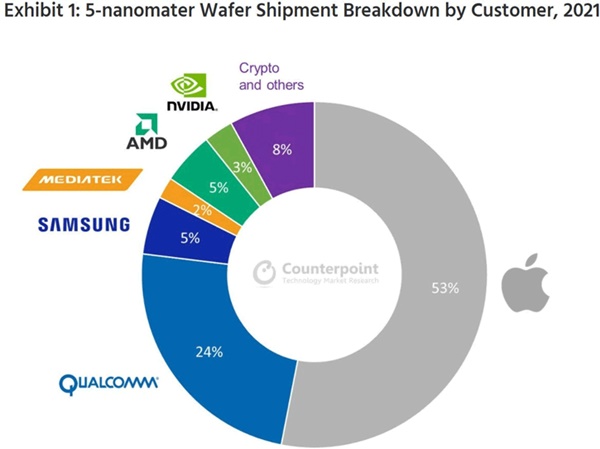 우선 차별적 공급가격 책정이 꼽힌다. TSMC는 지난 8월 칩생산 공급가를 최대 20% 인상한다고 발표했지만 애플에게만은 3% 인상률을 적용하는데 그친 것으로 알려졌다. 이것이 크게 작용한 것으로 알려졌다.