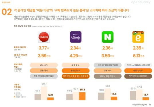소비자 데이터 플랫폼 기업 오픈서베이가 최근 '온라인 식료품 구매 트렌드’를 발간했다. 이번 조사는 총 1500명, 각 온라인 쇼핑몰 채널 이용자...