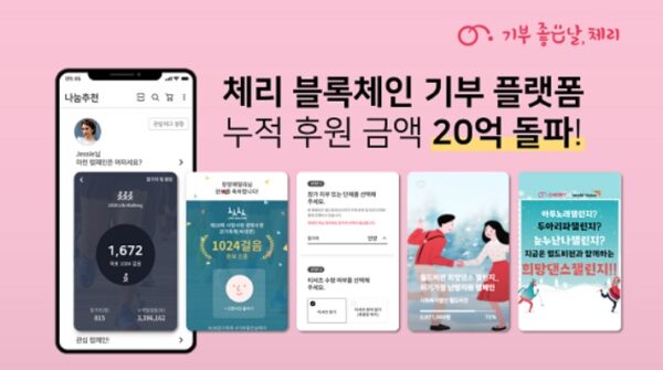 블록체인 기부 플랫폼 '체리', 누적 후원액 20억원 돌파