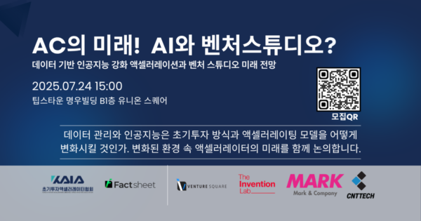 초기투자액셀러레이터협회(KAIA)는 오는 24일 오후 3시부터 6시까지 서울 팁스타운 명우빌딩 유니온스퀘어에서 ‘AC의 미래! AI와 벤처스튜디오?’를 주제로 세미나를 개최한다고 2일 밝혔다. 협회에...