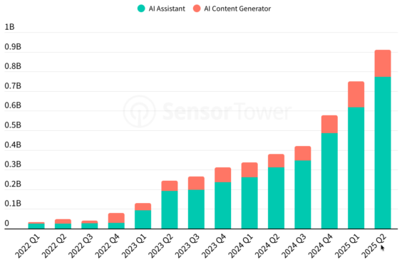 AI 앱 시장, 2025년 상반기 폭발적 성장세… 다운로드 67% 급증