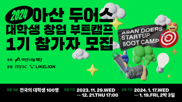 아산나눔재단, 실전형 창업 교육 프로그램 ‘아산 두어스 대학생 창업 부트캠프’ 1기 대학생 모집