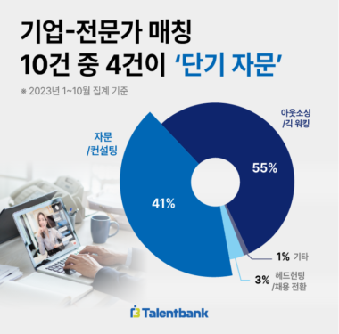 탤런트뱅크 2023년 기업-전문가 매칭 방식 분석…’기업 전문가 매칭 의뢰 40%가 단기 자문’