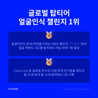 카카오브레인, 글로벌 얼굴인식 대회 ‘FATE’의 PAD 부문에서 국내 기업 최초로 1위 달성