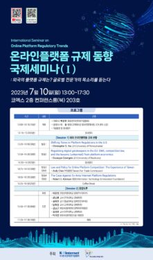 한국인터넷기업협회는 고려대학교 ICR센터와 공동으로 코엑스에서 글로벌 전문가가 참석하는 온라인플랫폼 규제 동향 국제세미나를 개최한다고 4일 밝혔다. 오는 10일 코엑스 컨퍼런스룸(북) 203호에서...