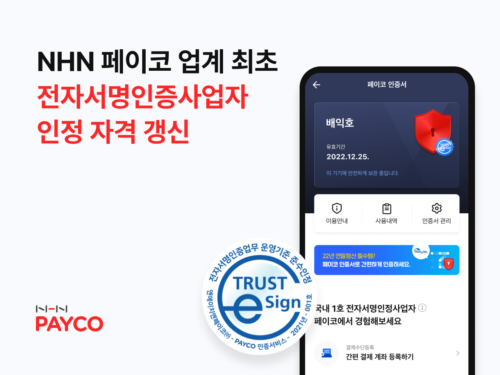 NHN페이코, 과기부 전자서명 인증사업자 2년 연속 선정
