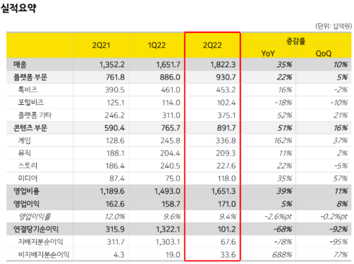 카카오, 콘텐츠·게임 등이 매출 견인… 2분기 영업이익 1710억원 달성