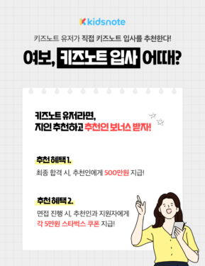 키즈노트, 유저 추천 인재 채용 “추천인 보너스 500만원 지급”