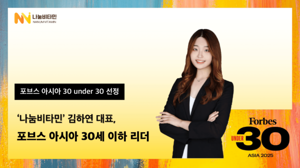 디지털 기부 플랫폼을 운영하는 소셜벤처 나눔비타민은 김하연 대표가 미국 경제지 '포브스(Forbes)'가 발표한 ‘2025 아시아 30세 이하 리더 30인(30 Under 30...