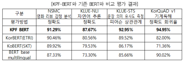 한국언론진흥재단은 ‘언론사를 위한 언어정보 자원 개발’ 사업의 결과물인 ‘KPF-BERT’를 23일 공개했다. ‘KPF-BERT’는 구글에서 개발한 다국어 언어모델인 ‘BERT(Bidirectional Encoder Representations from Transformers)’를 한국언론진흥재단이 보유한 빅카인즈 기사...