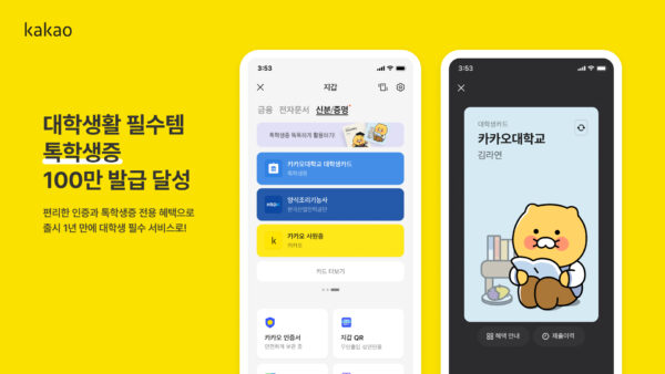 카카오 톡학생증, 출시 1년 만에 누적 발급 수 100만명 돌파