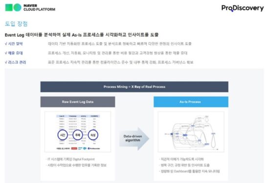 프로세스 마이닝 전문 기업 퍼즐데이터는 퍼즐데이터는 자체 기술력으로 개발한 ‘프로디스커버리(ProDiscovery)가 네이버 클라우드 플랫폼의 마켓플레이스에 입점했다고 26일 밝혔다. 퍼즐데이터 프로디스커버리는 디지털...