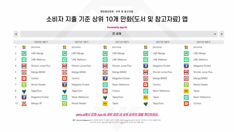 ‘픽코마’, 2021년 전 세계 소비자 지출 가장 많은 만화 앱 1위