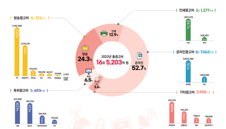 2022년 광고비 전년 대비 6.5% 증가...온라인광고 가장 큰 비중