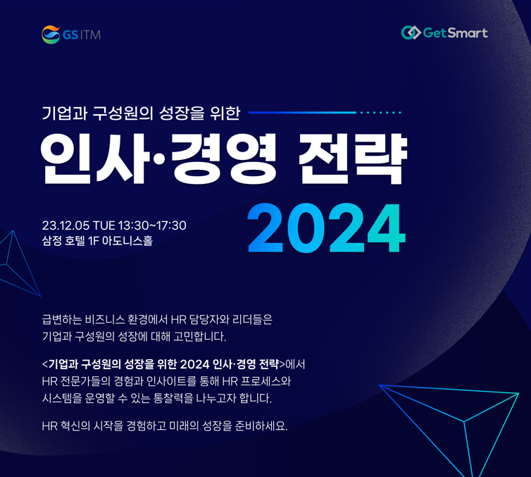 GS ITM(대표 변재철)와 GetSmart(대표 원승빈)가 오는 12월 5일 ‘기업과 구성원의 성장을 위한 2024 인사·경영 전략’ 세미나를 개최한다.
