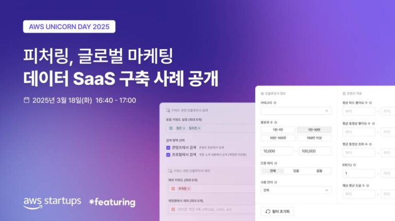 글로벌 SNS 데이터 분석 기업 피처링은 ‘AWS 유니콘 데이 2025’에서 성공적인 엔터프라이즈 SaaS 구축 사례를 발표한다고 14일 밝혔다. 오는 18일...