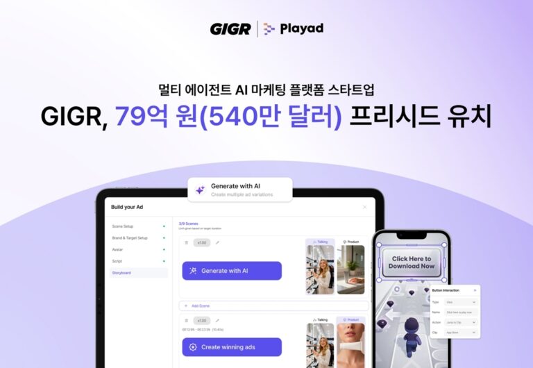 BRV캐피탈매니지먼트 리드, 미래에셋벤처투자 참여…크루캐피탈 등 엔젤 투자자 참여 광고 기획·제작·실험·개선 전 과정 하나로 잇는 멀티 에이전트 AI 마케팅 플랫폼 ‘플레이애드’...