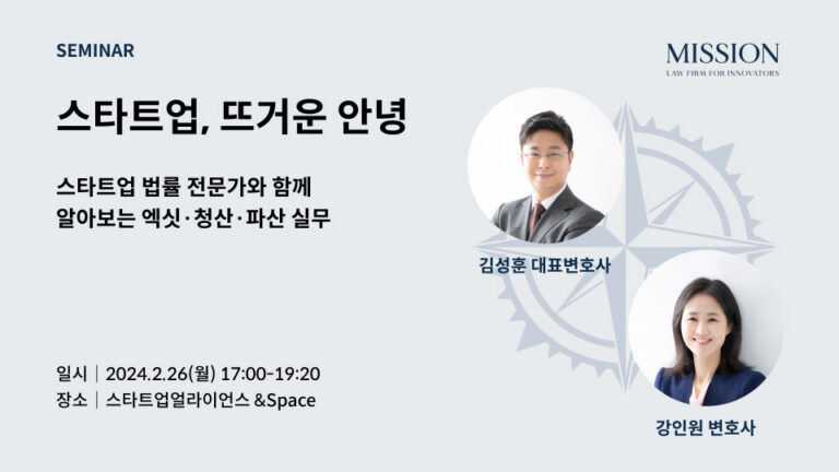 스타트업 전문 법무법인 미션은 엑싯, 청산, 파산 등 법인의 ‘마무리’를 준비하는 스타트업을 위한 세미나를 개최한다고 20일 밝혔다. 오는 26일 ‘스타트업,...