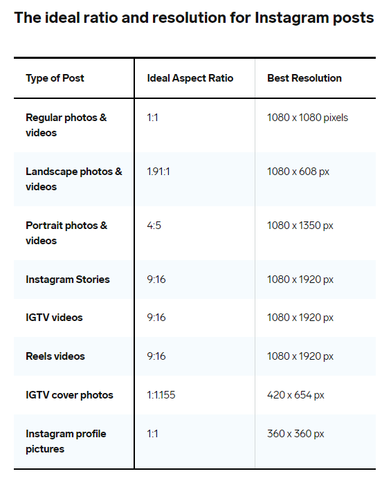 인스타그램에 완벽한 사진과 동영상을 올리는 정확한 비율
