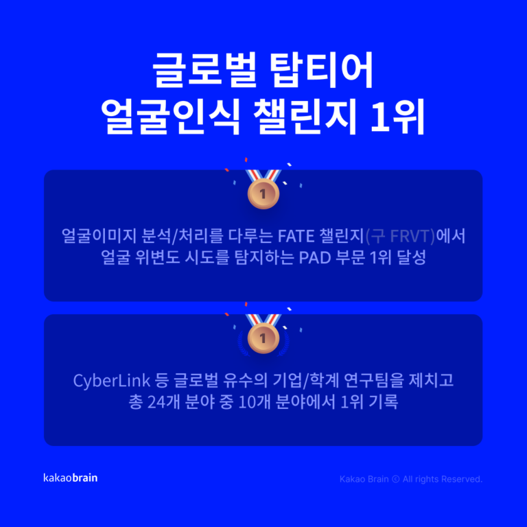 카카오브레인, 글로벌 얼굴인식 대회 ‘FATE’의 PAD 부문에서 국내 기업 최초로 1위 달성