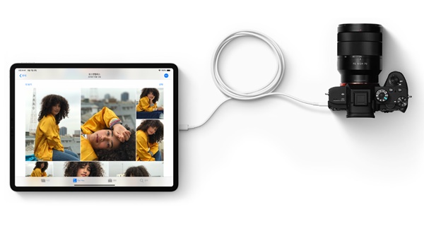 애플은 이미 아이패드에서 다기능 USB-C 포트를 사용해 충전 및 외장 저장 장치, 카메라, 디스플레이와 같은 액세서리에 연결하고, 다른 기기에 전원을 공급할 수 있도록 지원하고 있다. (사진=애플)