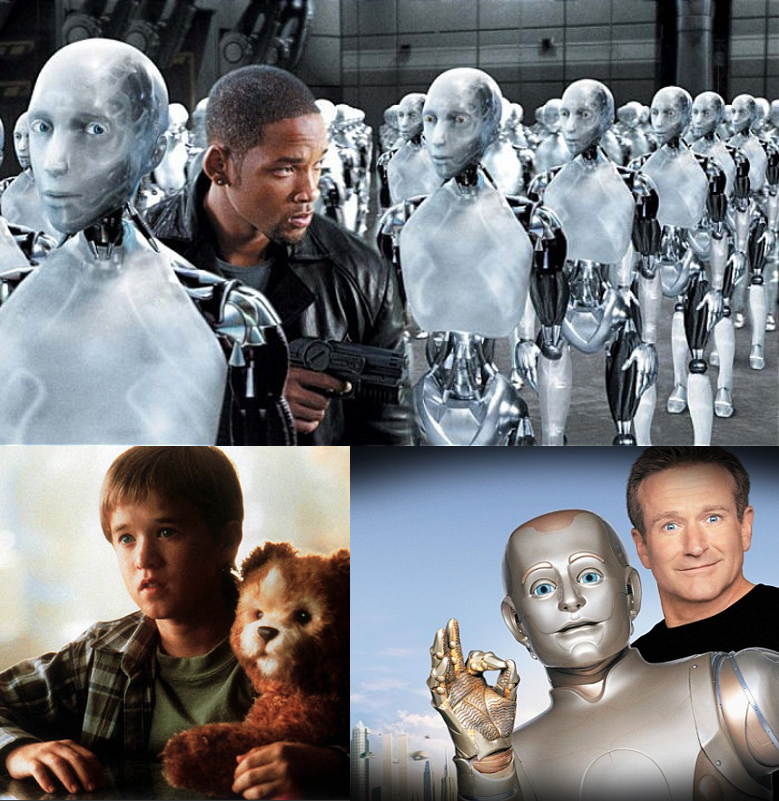 (시계방향) 영화 '아이로봇'(위), '바이센테니얼 맨', 'A.I.' 모두 휴머노이드가 등장하는 미래상을 그리고 있다.