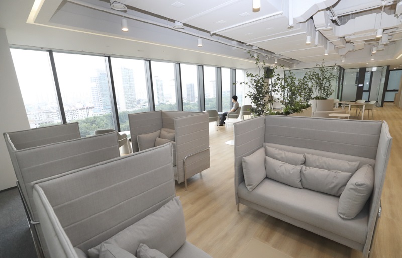 유연한 근무 환경 조성을 위해 자율 좌석제를 도입했으며, 직원들이 업무 성격에 따라 일반 업무공간, 집중 업무공간, 협업형 좌석 등을 선택할 수 있다. 또한, 직원들의 업무 집중도와 편의성 제고를 위해 자율주행 로봇을 활용한 무인 우편 배송 시스템을 운영한다.
