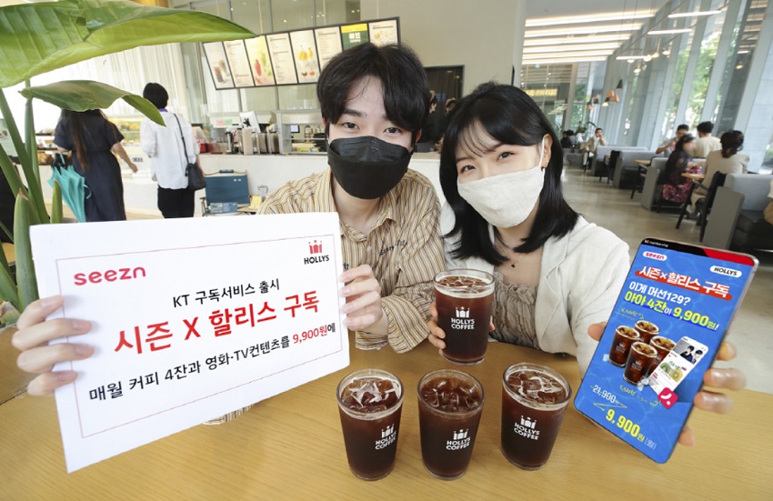 KT는 전국 580여 개 매장을 보유한 커피 브랜드 ‘할리스’와의 제휴를 통해 ‘시즌X할리스 구독’ 서비스를 출시한다고 4일 밝혔다. 월정액 9,900원에 KT의 OTT 서비스 Seezn과 할리스의 커피 4잔을 매월 이용할 수 있다. 정상가 대비 최대 55% 할인된 가격이다.