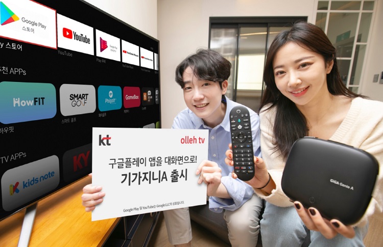KT가 8일부터 자사 IPTV 서비스 올레 tv의 셋톱박스에 구글 안드로이드 TV 운영체제(OS)를 탑재한 ‘기가지니A’를 출시한다고 밝혔다.