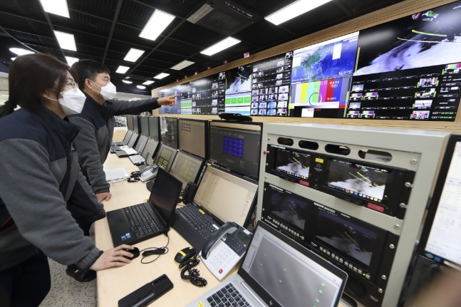 KT 서울국제통신센터 직원들이 동계올림픽 국제방송중계망 사전 품질 테스트를 진행하고 있는 모습