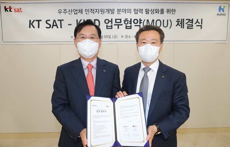 KT SAT이 국가과학기술인력개발원(KIRD)과 9일 KT SAT 용인위성센터에서 우주기술분야 전문인력 양성을 위한 업무협약을 체결했다고 11일 밝혔다.
