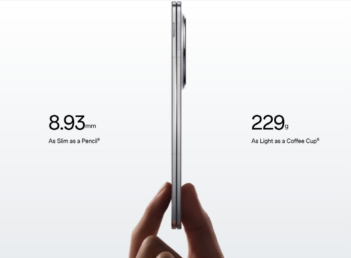 오포(Oppo)도 파인N5(Find N5)를 출시했는데, 이 제품은 ‘세계에서 가장 얇은 책 스타일 폴더블’이라고 소개되고 있다. 스마트폰을 닫았을 때 두께가 8.93mm, 열었을 때 두께가 4.21mm에 불과하다. 실제 제품을 테스트할 경우 타기업 폴더블 스마트폰의 실용성과 부피에 대한 기존의 우려를 어느정도 불식시키는데 충분히 좋은 디자인이라는 평가가 많다.