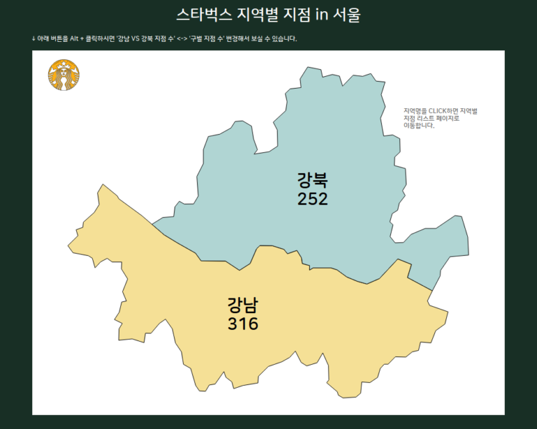 [스타벅스 데이터] 서울 시내 스타벅스 매장 위치 분석