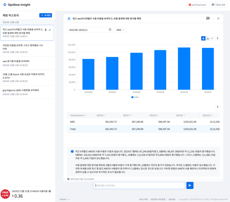 멀티 클라우드 관리 플랫폼 전문 기업 옵스나우(OpsNow, https://www.opsnow.com/)는 생성형 AI 기술을 활용해 클라우드 데이터부터 그래프와 도표를 포함한 분석까지 채팅으로 쉽고...