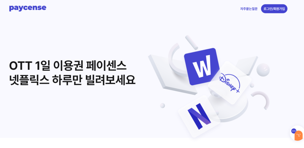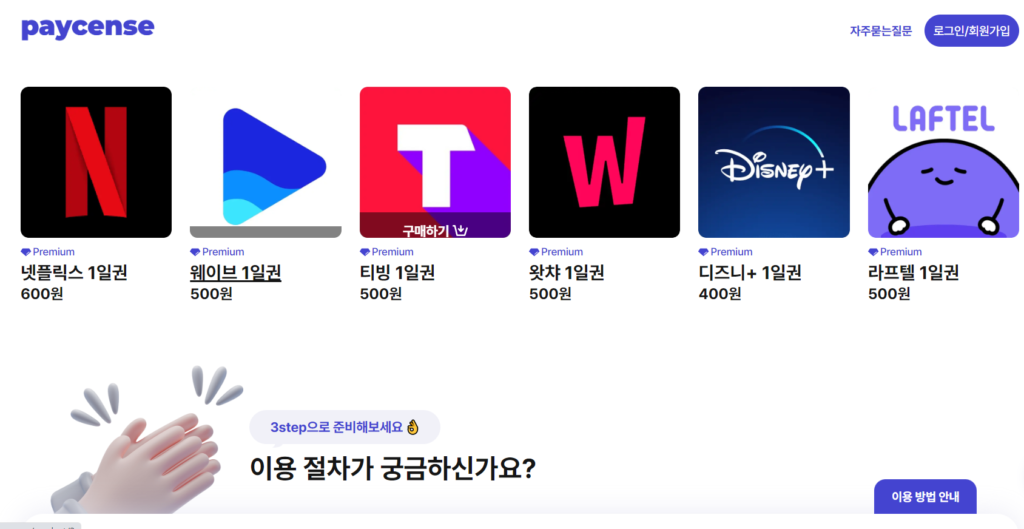 지난달부터 서비스하고 이는 페이센스는 다양한 OTT의 1일 이용권을 판매하고 있다. (이미지=페이센스 홈페이지)