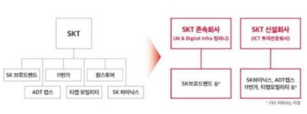 존속회사인 SK텔레콤의 지향점은 AI 및 디지털인프라 회사다. 유무선통신 사업에 시너지를 낼 수 있는 SK브로드밴드, SK텔링크 등이 편제됐으며, 신임 CEO에는 유영상 SK텔레콤 이동통신(MNO) 사업대표가 임명될 것으로 예상된다.