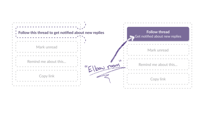 디자인 팀이 활용하는 컴포넌트에 대해 잘 알고 있으면 'elbow room'을 확보하는 것이 훨씬 쉬워집니다. 당신은 디자이너에게 '여기에 빈 공간을 활용해서 alert 문구나 툴팁을 추가하는 것은 어떤가요?'라고 제안해볼 수 있습니다.