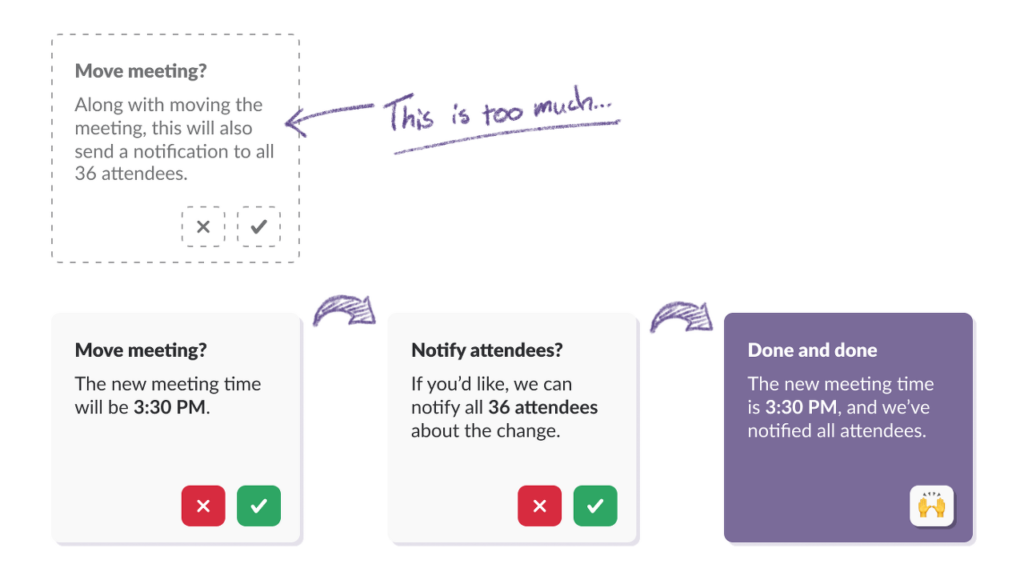 당신의 제안 때문에 오히려 일이 복잡해졌다고 말하는 사람이 분명히 생길 것입니다. 사실, 더 복잡해진 것이 맞습니다. 하지만 그래야 합니다. 왜냐하면 '쓸만한' UI와 '혼란스럽고, 위험하며, 신뢰하기 힘든' UI의 차이가 이러한 과정에서 나오기 때문입니다.