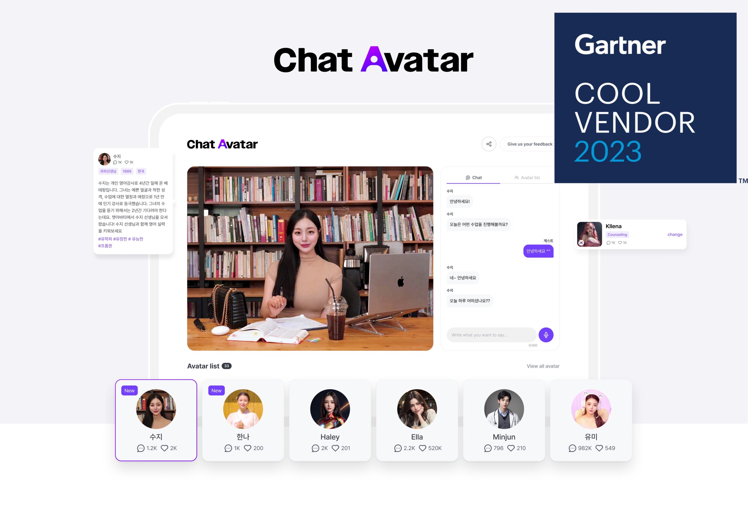 디지털 휴먼 기업 클레온은 IT 리서치 기업 가트너(Gartner)의 ‘2023 가트너 메타버스 및 몰입 경험(Metaverse and Immersive Experiences) 부문 쿨 벤더'로...