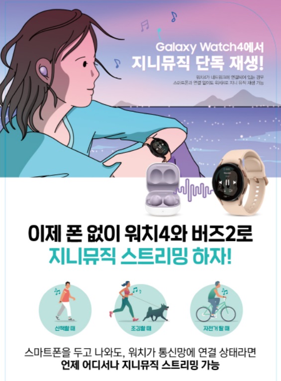 KT “이제 갤럭시워치4에서 지니뮤직 바로 연결”…버즈2 특별할인