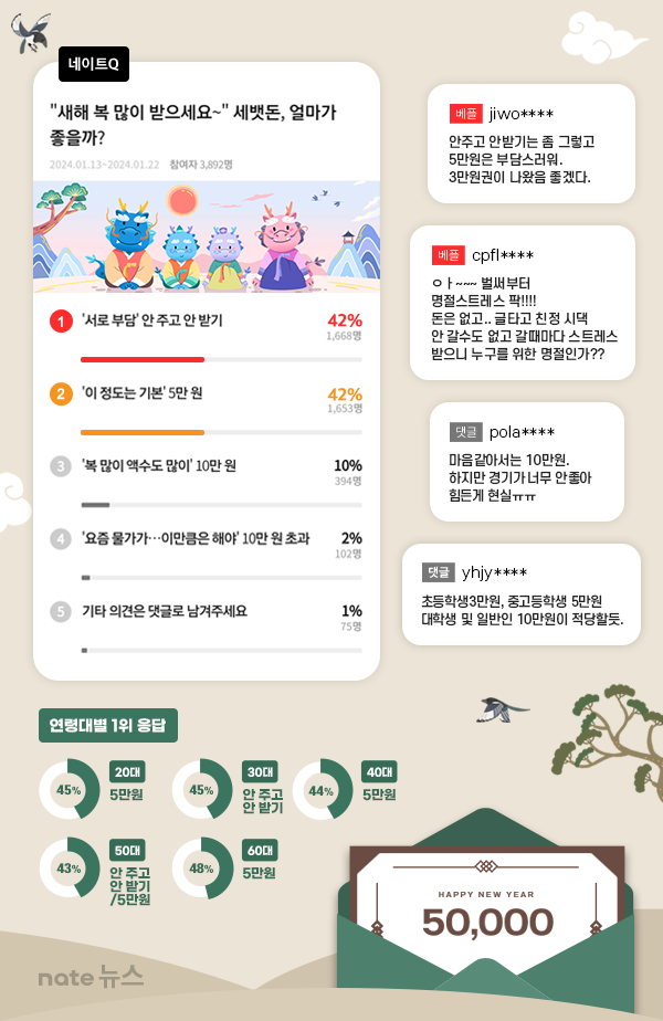 세뱃돈 문화 사라지나?, 42% ‘서로 부담, 안 주고 안 받자’ 선호