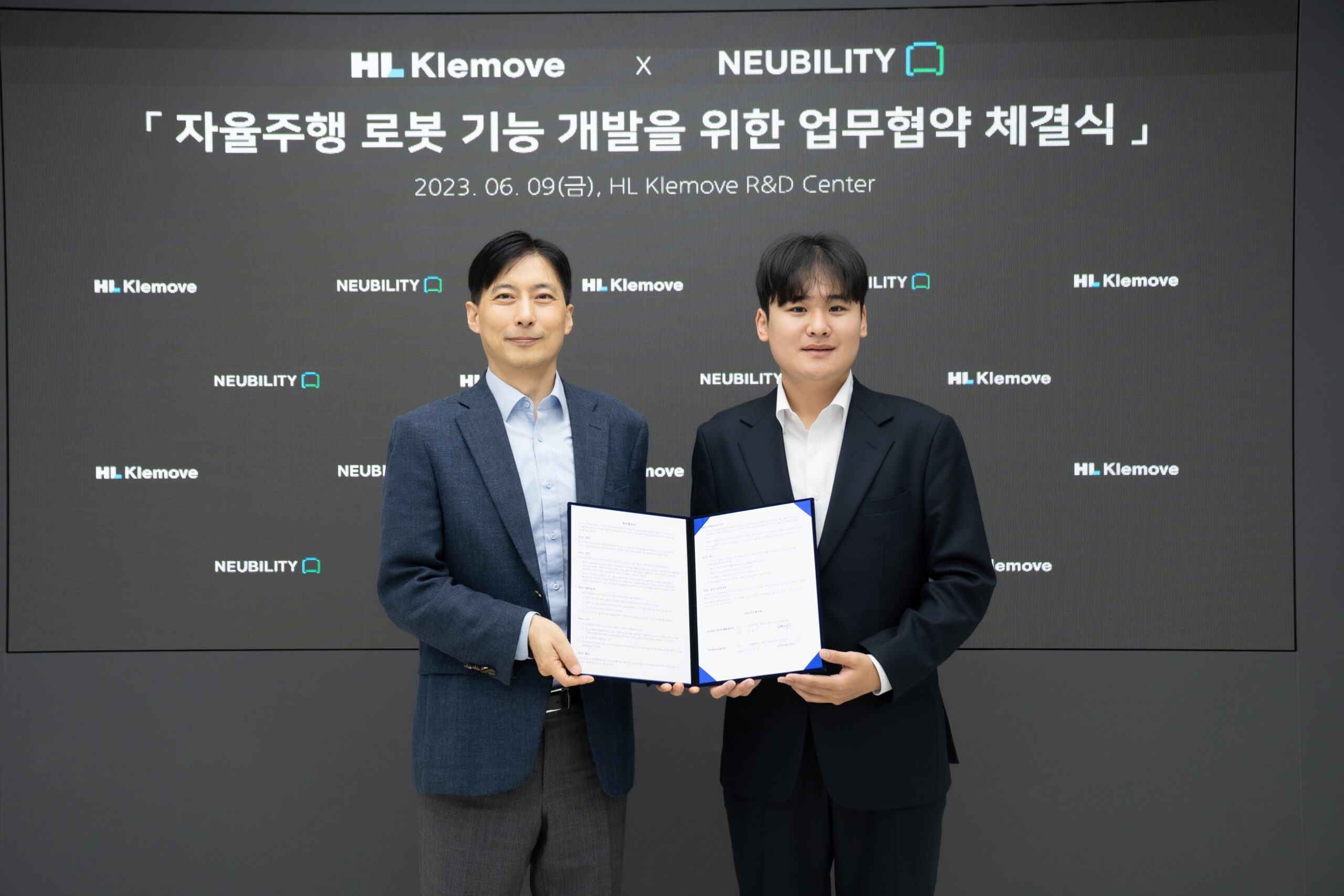 뉴빌리티-HL클레무브, 자율주행 로봇 기능 개발 위한 기술협력 MOU 체결