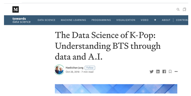 이제는 메가트랜드 그 자체가 되어버린 BTS는 데이터 시각화에서도 핫한 주제입니다. 국내외 여러 사이트에서 K-pop과 관련한 데이터를 분석할 때 BTS 이야기가 꼭...